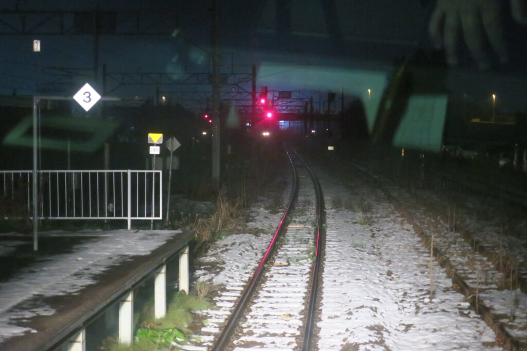 「発車まで3分です」と突然、女性の声がモニターから聞こえてきました。モニターはPRANETS(プラネッツ)という名称で、列車の位置を荷主等に知らせる装置です。付加機能として発車前の通知、徐行箇所の通告機能を備えています。その声に促されるように最終確認をして4時17分、新旭川駅を出発しました。外はまだ暗闇でヘッドライトに照らされた2本のレールだけが浮かび上がります。最高速度は75㌔、平野部は順調にジョイントを刻んでいきます。