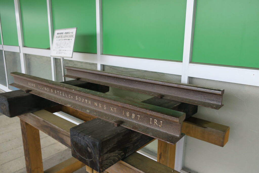 標茶駅の1番ホームにありますイリノイ社(アメリカ)1897年12月製のレール(摩周駅構内にありました)