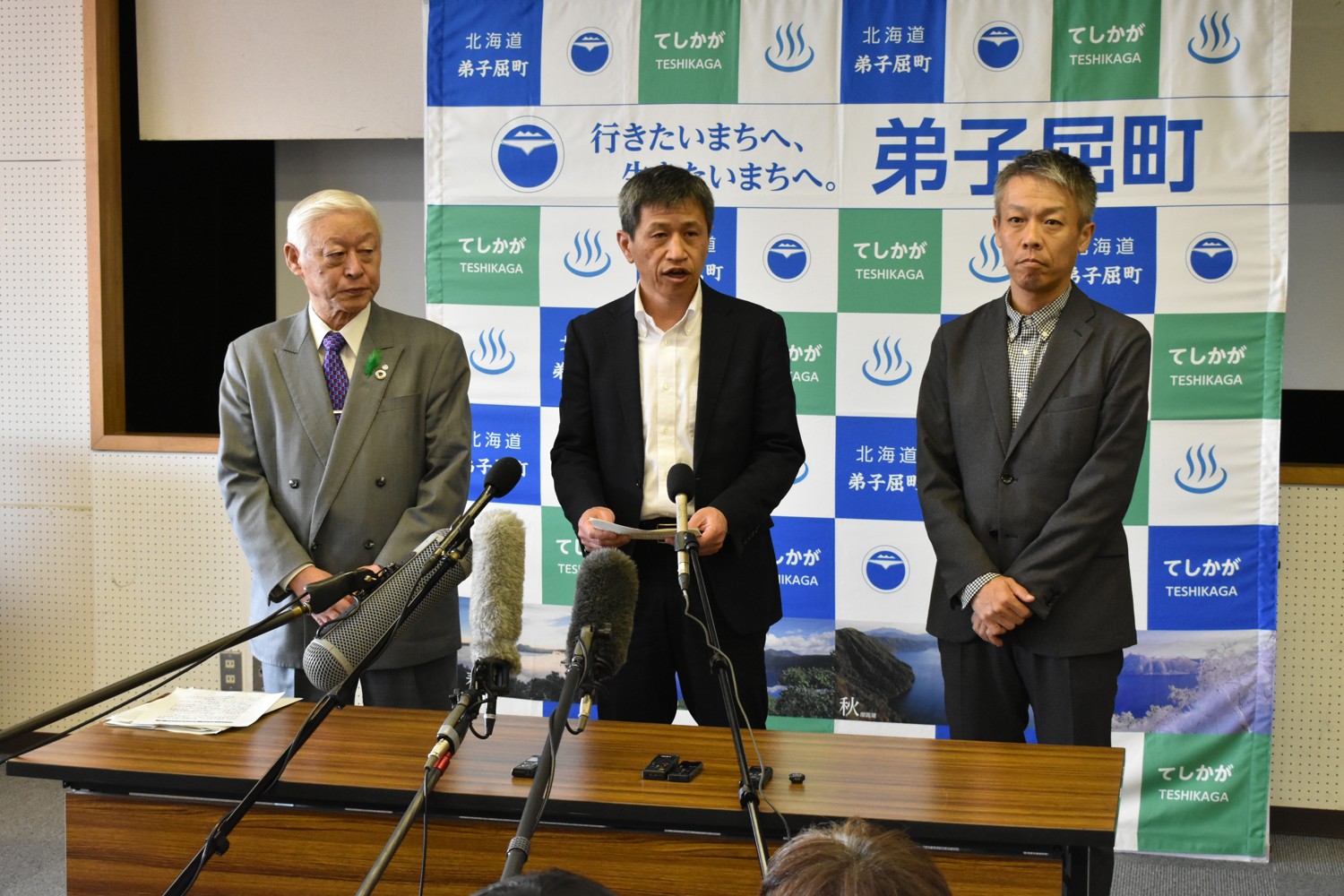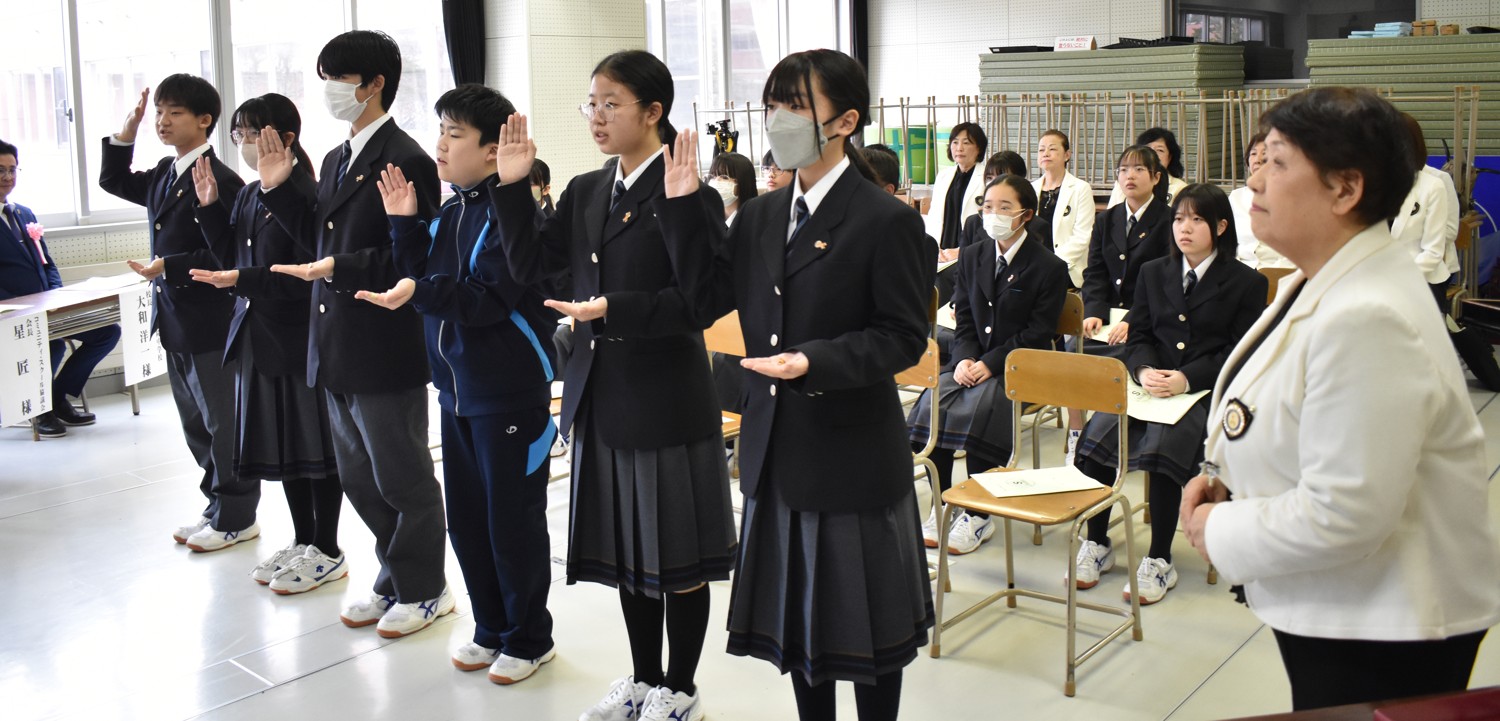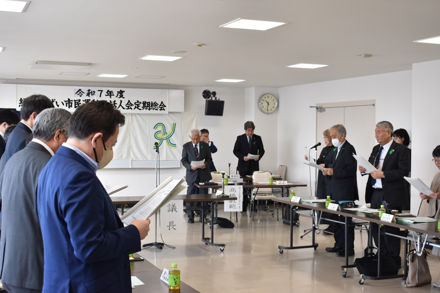[写真/戦後80周年の節目に向けてなど、団結ガンバローで気勢を上げた参加者(中標津町)]