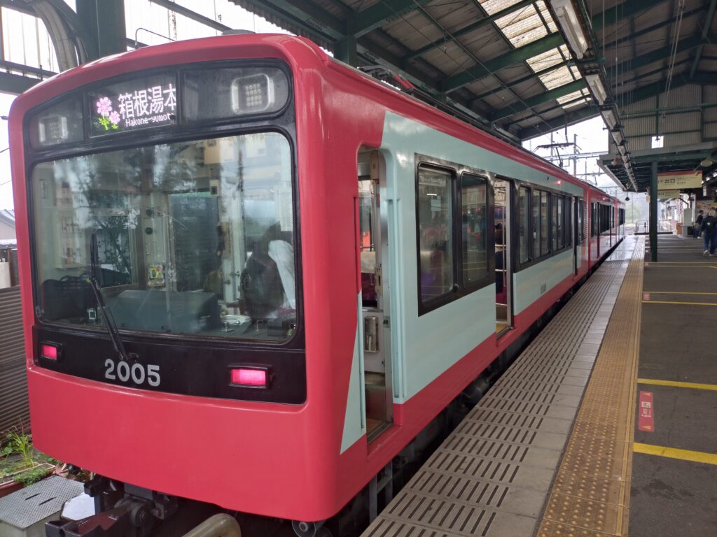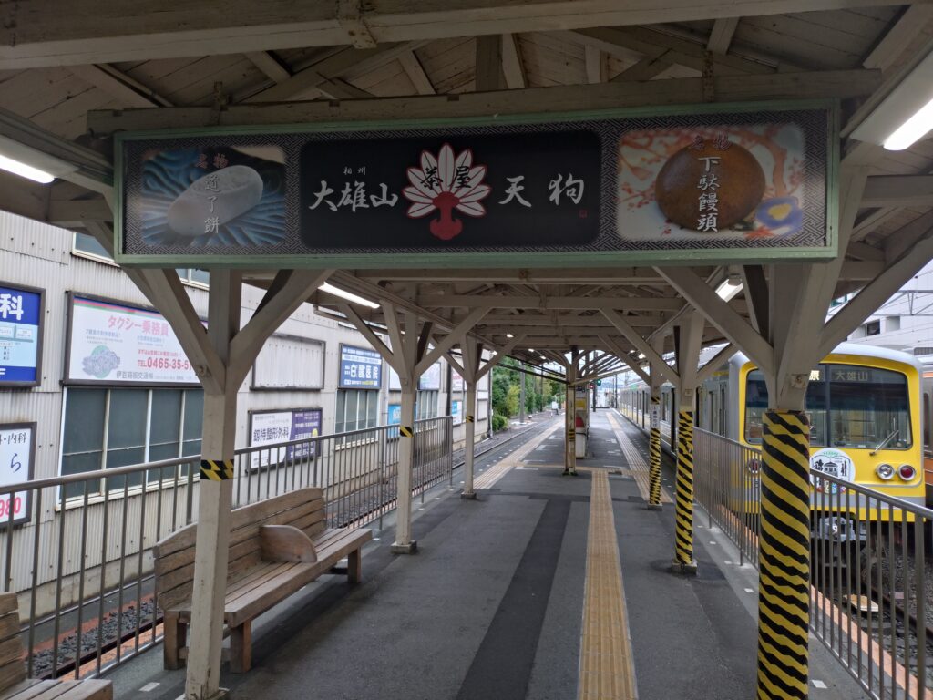 その翌朝、伊豆箱根鉄道大雄山線に乗るために品川から東海道本線で小田原へ向かいました。大雄山線は大雄山まで全長9.6㌔。車内はドアに鉄道員のお話があったり、壁には花のイラストがあったりで、とても温かい雰囲気でした。