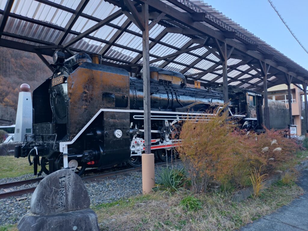 同県の木祖村に「お六櫛」の実演を見るため訪れましたが、伝統の技術に目を見張りました。見学場所の近くにD51-238が保存されていました。車体はピカピカで運転席にも入れました。村長さんに聞いたところ、役場で塗料を用意しましたが、塗ったのはボランティアの村民の方々だそうです。村長さんも参加されました。