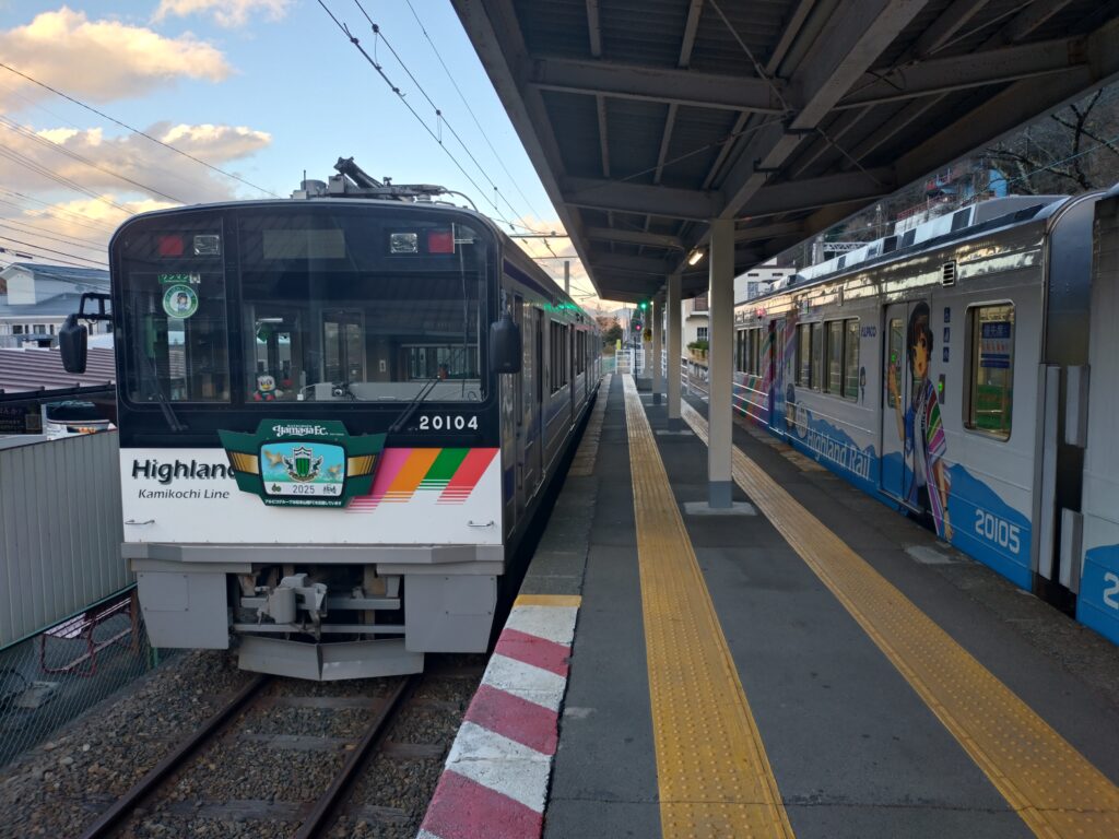 長野県松本市で会合がありましたので、アルピコ交通上高地線に乗ってみました。松本から14.4㌔の先に終点の新島々があります。市街地を抜けて、徐々に山が迫った所で新島々が現れます。