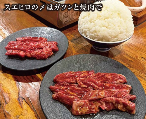 「焼肉 べら旨 メシ(漫画盛り)、サガリ、カルビ」