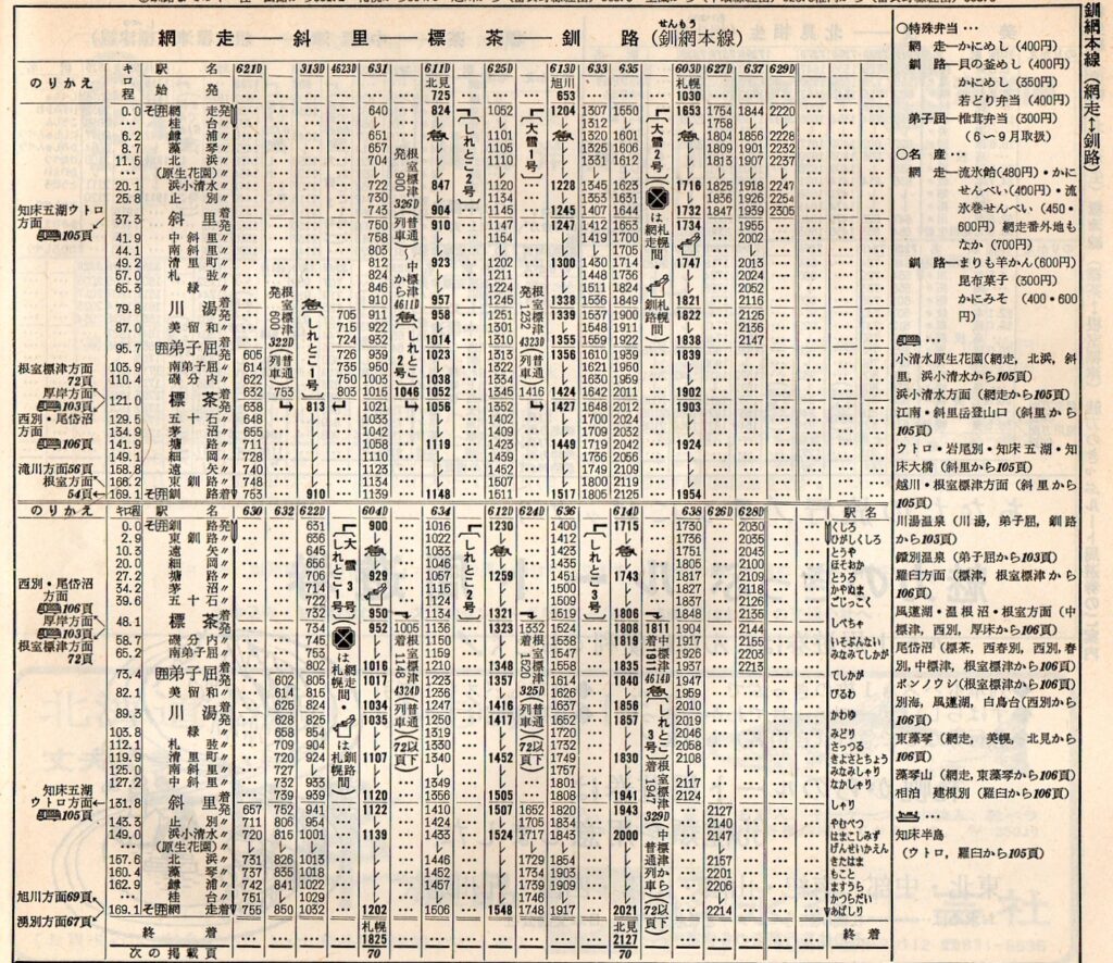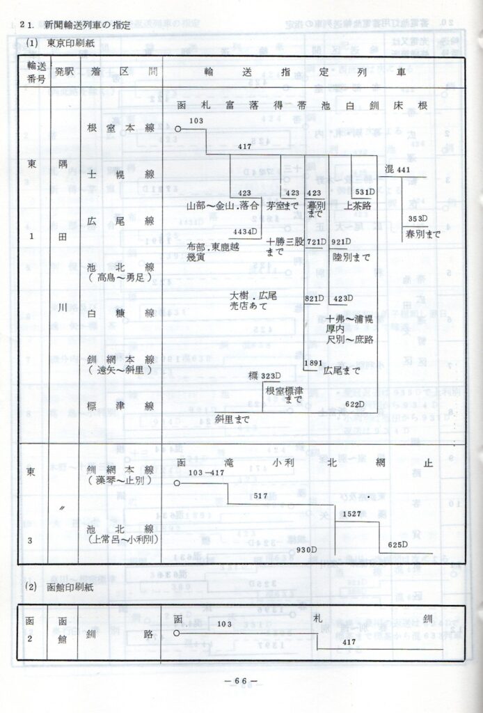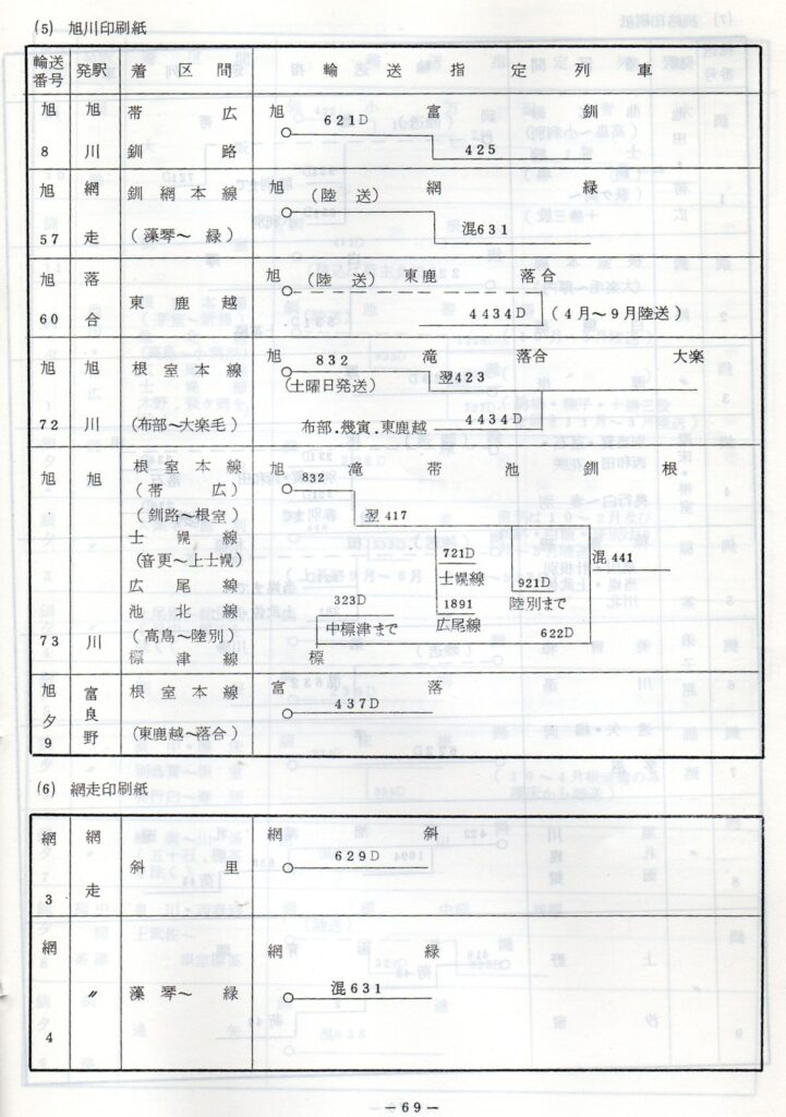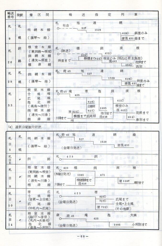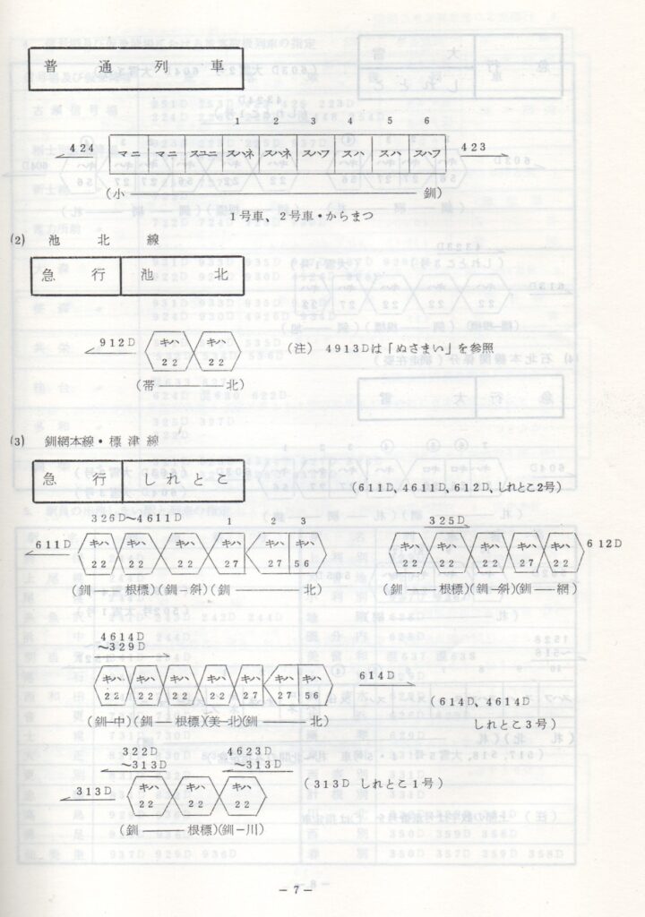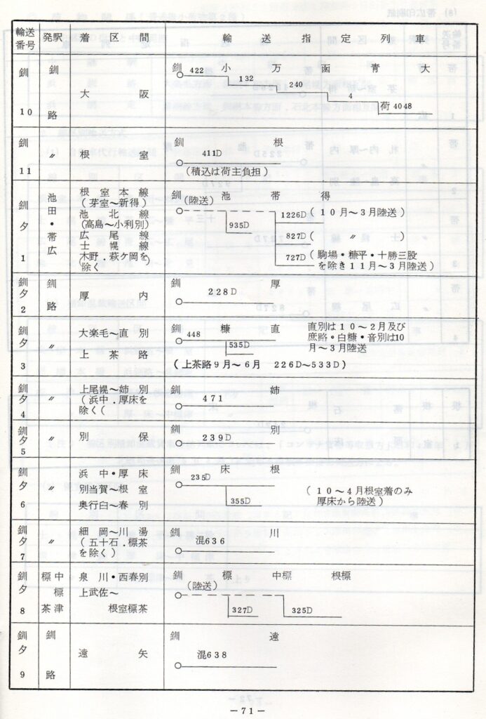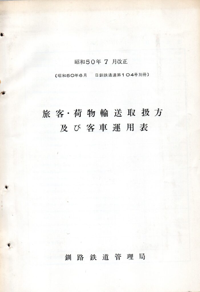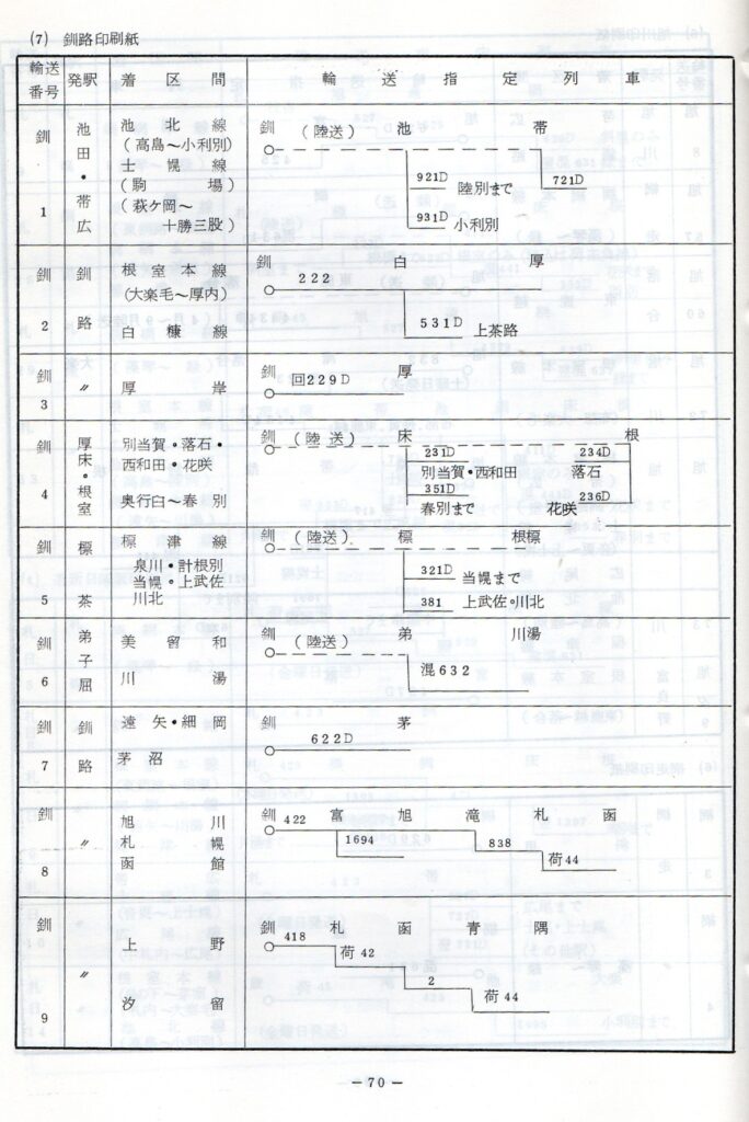 【釧路鉄道管理局 旅客・荷物輸送取扱方及び客車運用表】