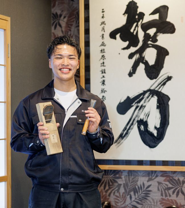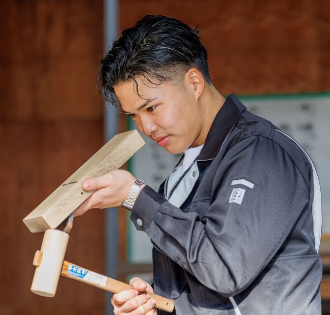 会社では大工や営業などあらゆる業務に携わり、三代目として期待がかかる。学生時代には3K(きつい・汚い・危険)と言われる大工仕事に不安を感じたこともあったが、アルバイトでいろんな職種を経験したことで、ものづくりに没頭できる環境の魅力に気がついたそう。