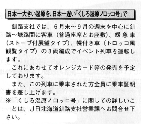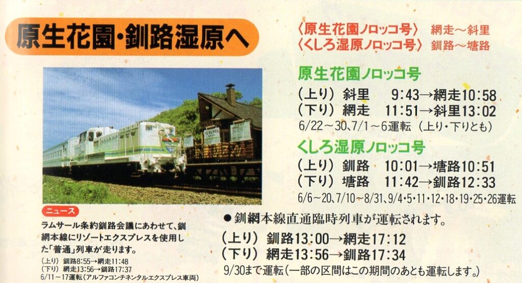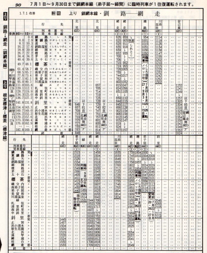 ※道内時刻表の6、7月には表記されず「JR北海道釧路支社に問い合わせ」