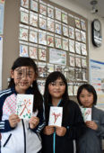 [写真/「私たちの絵手紙です」と(左から)野村さん、元木さん、峯末さん ]