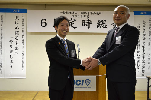 菊池氏が次年度理事長 釧路JC総会(2019-06-18)
