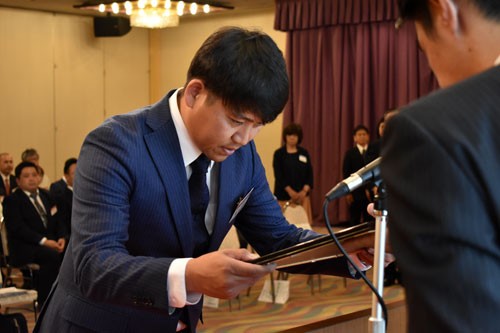[写真/認可証を受け取る橋川会長 ]