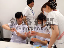 [写真/医療従事者確保を目指して開かれている看護師体験会(根室市内) ]