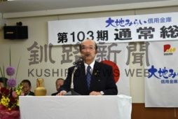 [写真/総代会であいさつに立つ遠藤理事長 ]