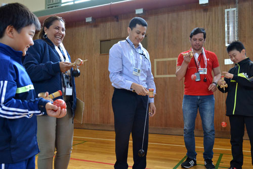 けん玉で国際交流 太田小にJICA研修員(2019-06-23)