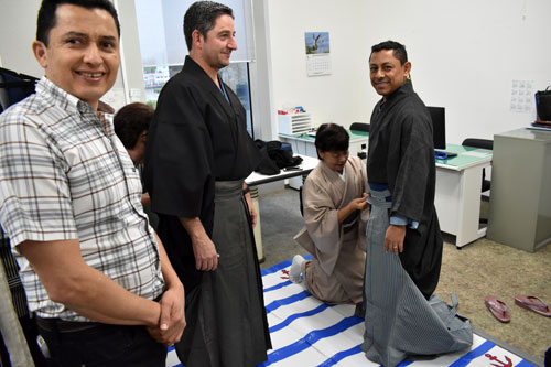 [写真/はかまを着用してご満悦の中南米の男性たち ]