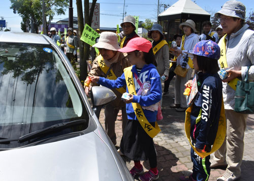 高齢者と児童が 交通安全呼び掛け (2019-06-25)