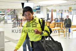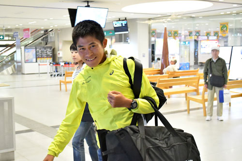 [写真/釧路空港に降り立ち、長期合宿の第一歩を踏み出した川内選手 ]