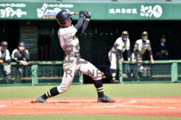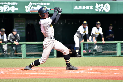 [写真/【Aブロック準決勝、釧北陽―釧高専】2回、右前2点適時打を放つ釧北陽の石垣。3安打4打点と躍動 ]