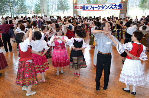 [写真/世界各国の踊りを楽しむフォークダンス大会(2016年4月、弟子屈町で行われた道東支部大会) ]
