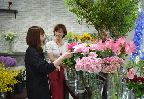 [写真/花の配置にこだわった1階のフラワーショップ ]