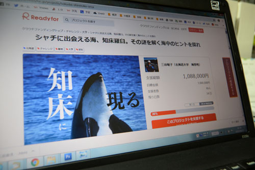 [写真/シャチの生態を海中から探るための調査費用を募っているクラウドファンディングの画面 ]