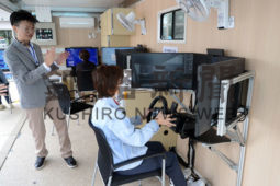 [写真/ドライブシミュレーターで運転の癖を確認する利用者 ]