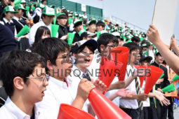 [写真/釧路連合に必死の声援を送る生徒ら ]