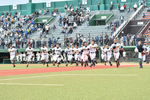 [写真/【Cブロック代表決定戦、釧湖陵―釧江南】3年ぶりの北大会出場を決め、応援席へ駆け出す釧湖陵 ]