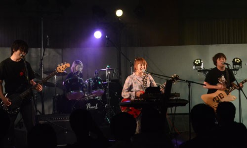 [写真/元気いっぱいに楽曲を届けるあいりさん(右から2人目)ら ]