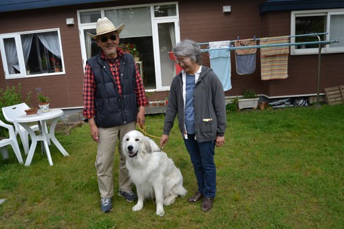 [写真/セラピードッグに認定された「蘭」と佐々木さん(右)と弟の中島さん ]