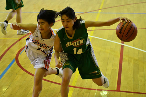 [写真/【女子準々決勝、釧景雲―釧幣舞・春採】相手の防御に臆することなく攻め込む釧景雲1年の仲谷瑠花 ]