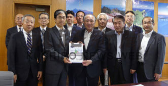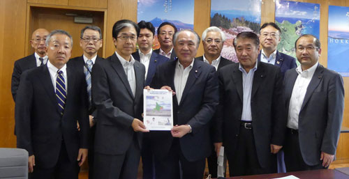 [写真/橋本部長に(左から3人目)に要請書を手渡す橋口会長ら ]
