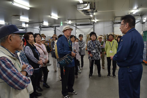 [写真/セコマ釧路配送センターの簑島所長(右)から説明を受ける参加者ら ]