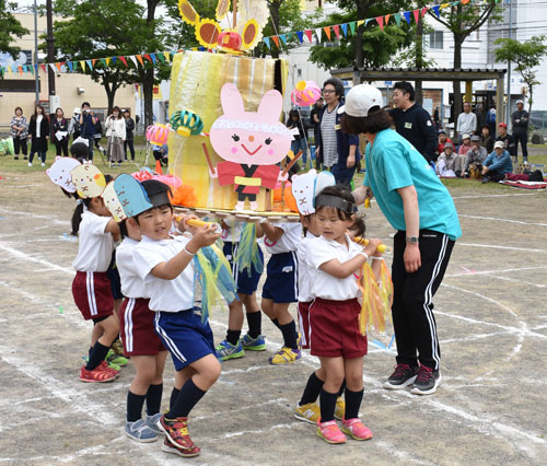 年中年少の遊戯手づくりみこし登場釧路カトリック幼稚園(2019-07-10)