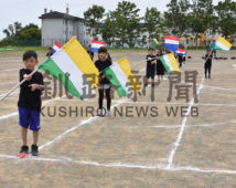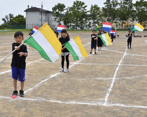 [写真/年長児が練習の成果を披露したカラーガード(望洋幼稚園) ]