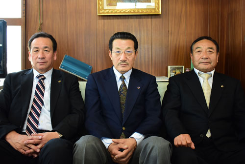 [写真/根室ライオンズクラブの新役員。左から森岡会計、野潟会長、竹本幹事 ]