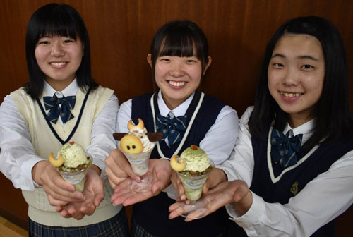 [写真/「うしパフェ」(中央)と「しべまっちゃ」。標茶ならではのパフェを味わってとPRしている ]