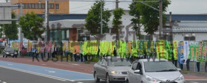 国道で「旗の波」安全運転呼び掛け 損保代理業協会支部(2019-07-11)