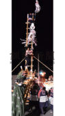 [写真/地上6㍍で鼓舞 高さ約6㍍のはしごの上でのまとい振りを鼓舞する獅子 ]