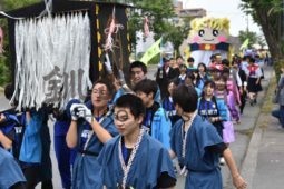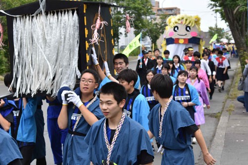 [写真/山車とともに仮装パレードを行う北陽高校の生徒 ]