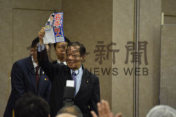 [写真/岩本氏への支持を訴えた二階氏 ]