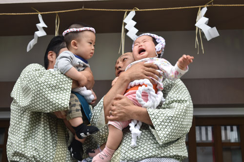 [写真/今年は厳島神社例大祭で行われた赤ちゃん泣き相撲 ]