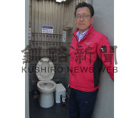 [写真/和式が苦手な人にも安心な洋式トイレを利用してください―と斎藤社長 ]