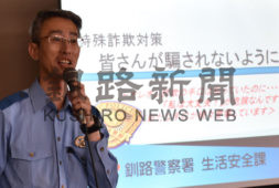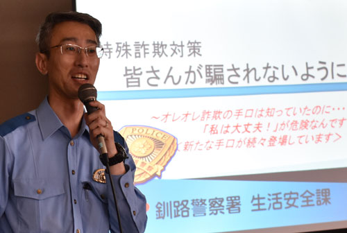 [写真/振り込め詐欺への対処方法などを説明した吉村係長 ]