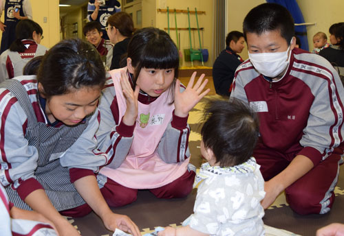 赤ちゃんふれあい体験 中学生が乳幼児と交流(2019-07-21)