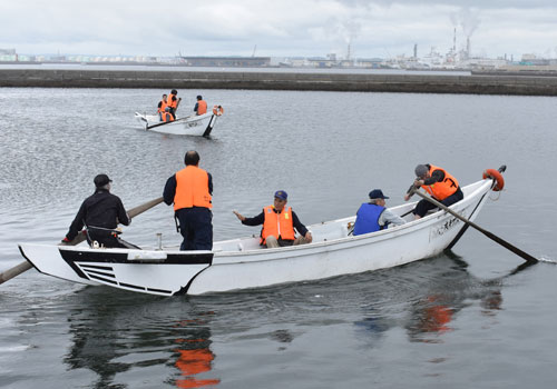 [写真/今年は8人が志願した櫓・櫂による手漕ぎ講習会 ]