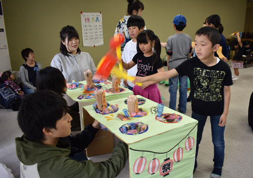 [写真/学生が用意した手作りゲームを楽しむ子供たち ]