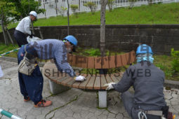 釧路川沿い清掃し ベンチなど塗装 加納工務店(2019-07-26)