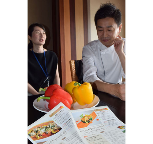 [写真/レシピを考案した舟崎オーナーシェフ(右)とイベントを主催する同ネットワークの石川さん ]