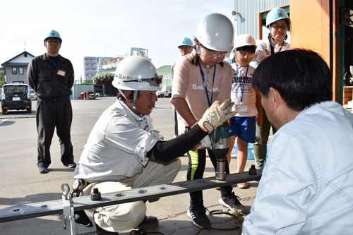 [写真/釧路製作所でボルト締めを体験する子供たち ]