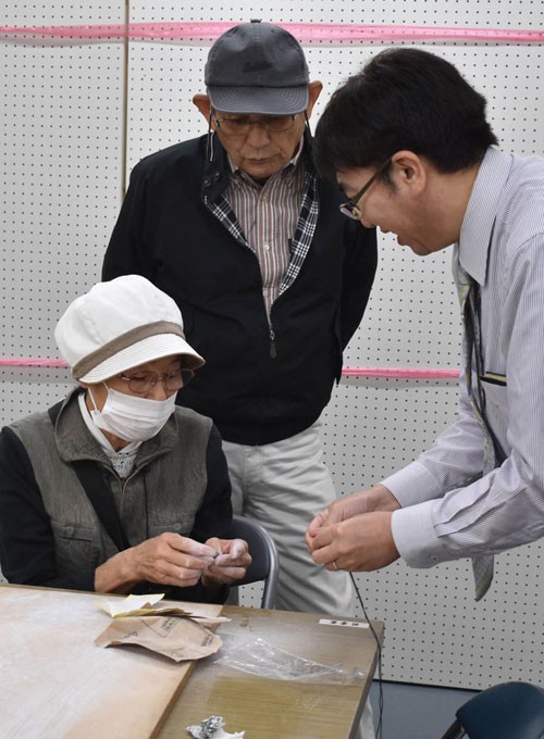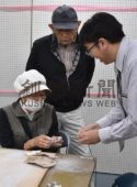 [写真/勾玉作りを楽しむ来館者 ]