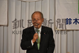 [写真/参院議員のバッジを胸に満面の笑みで語る鈴木氏 ]